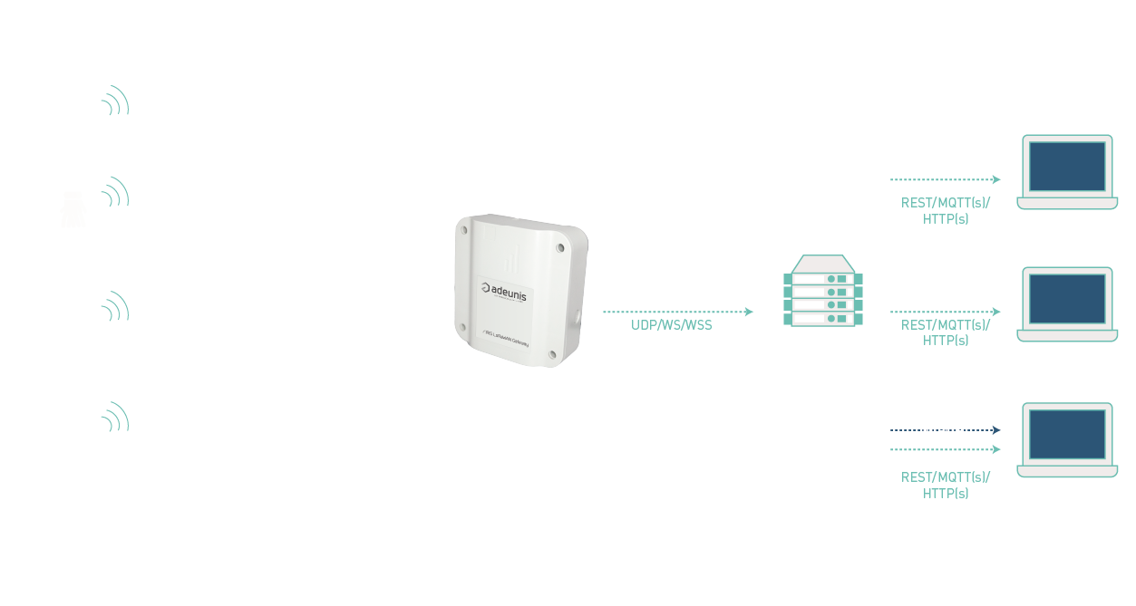 Ce mode permet de s’appuyer sur un fonctionnement LoRaWAN embarqué côté passerelle. Il peut être choisi lorsque l’architecture recherchée nécessite davantage de fonctionnement local, tout en conservant l’intégration vers vos systèmes aval.